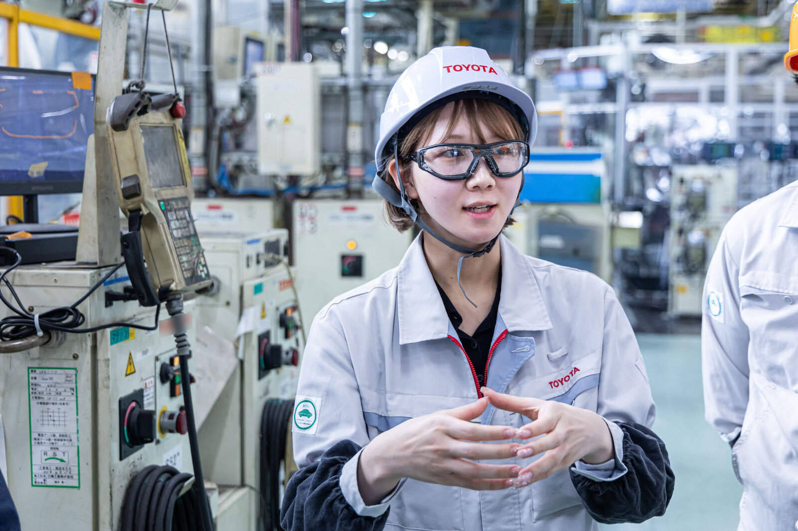 Kyoka Yono is currently on transfer from Takaoka to gain expertise at the Motomachi Plant’s Logistics & Information Manufacturing Engineering Division. She wants to use this knowledge to help create workplaces where everyone can thrive.