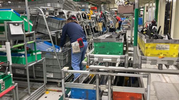 Previously, line workers had to search for and retrieve what they needed from the racks of components. In a single day, they would walk as much as 15 kilometers. Thanks to THDS, that figure has fallen to around 2.7 kilometers. Pick-up points are also set at heights that can be easily reached by all staff.