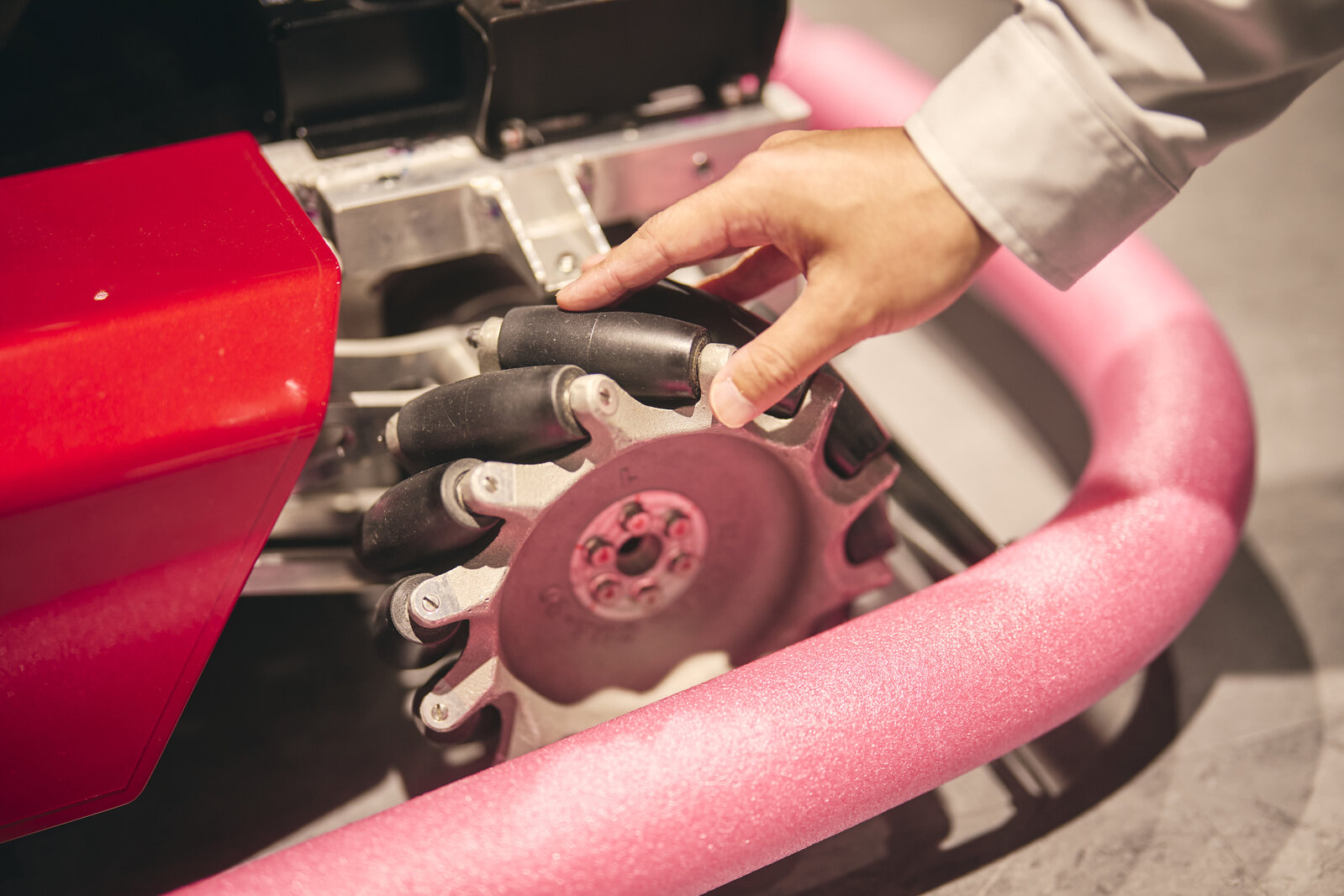 In the kart games, you can do things like drifts and spins. To give kids that experience in a safe and simple way, we decided to try mecanum wheels.