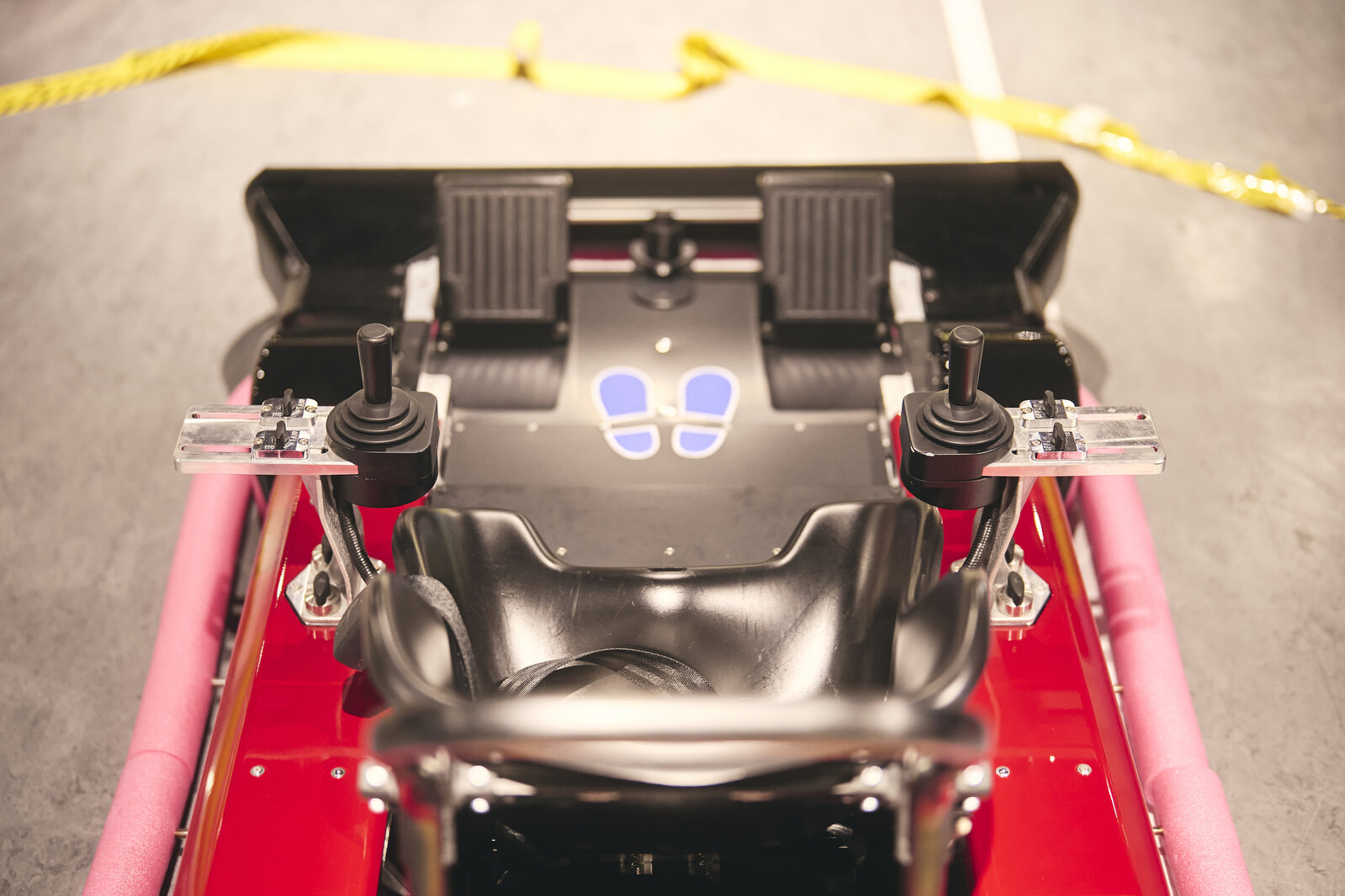 The change from steering wheel and pedal to joystick controls was among those prompted by user feedback along the way.