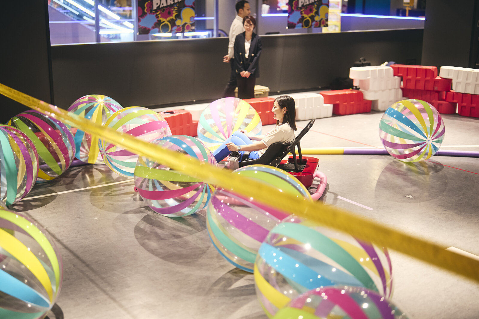 For example, from a visual perspective, we used to set up Bomb! Bomb! Bulldozer with about a thousand small colored balls, but this damaged the carts and made more work for the operating staff. By switching to giant beach balls, we were able to make the game more visually appealing and more fun for viewers.