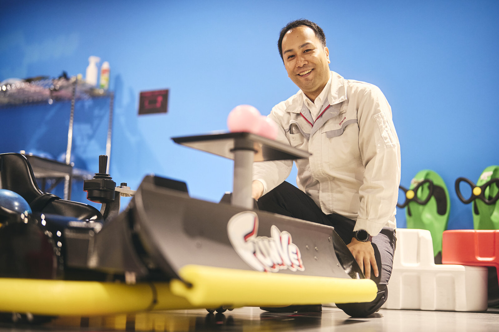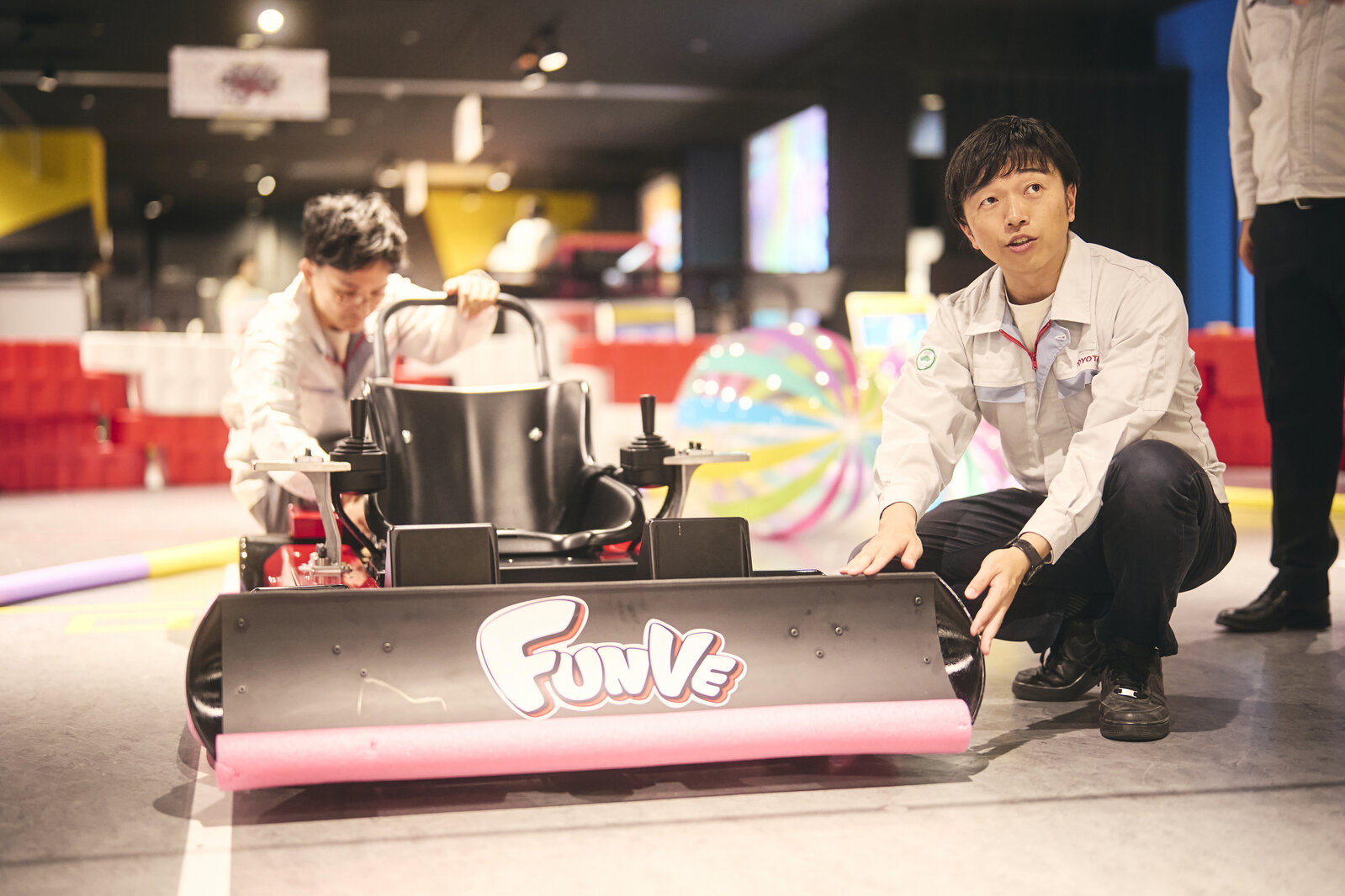 In one corner of a workshop where Toyota cars are being developed, the FUNVE team continues to chase its mission, envisioning the cheers of excited onlookers. Spurred on by the power of countless smiles, perhaps they will one day take FUNVE to the world stage.