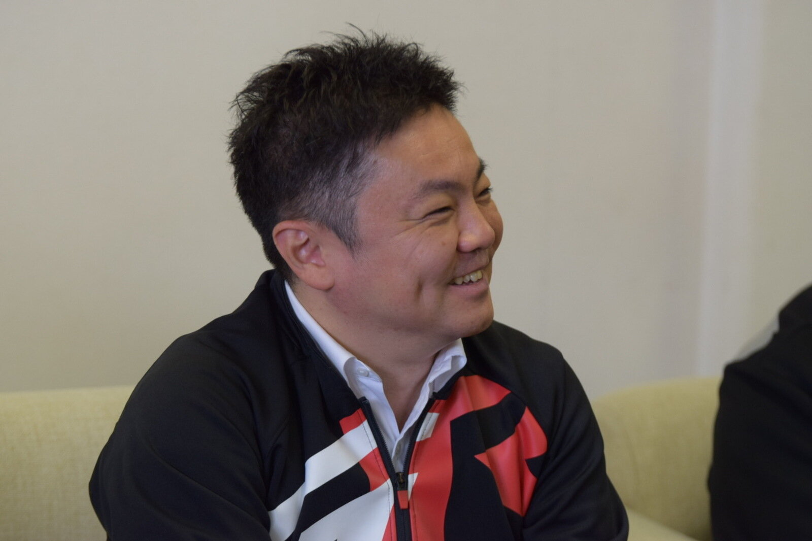 A smiling Tomoya Takahashi, president of TOYOTA GAZOO Racing (TGR), joked with reporters at Round 6 of the ENEOS Super Taikyu Series 2025 Empowered by BRIDGESTONE, held at Okayama International Circuit (Mimasaka) on October 25.