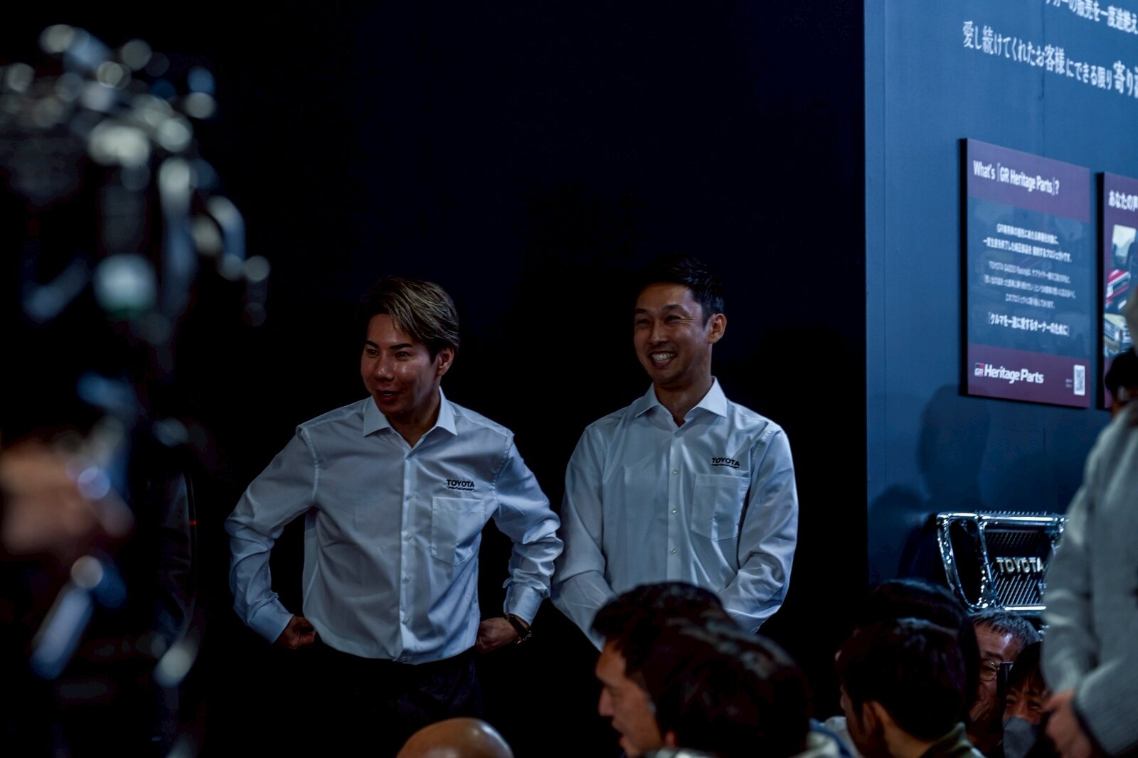 During the talk session, the chairman’s peers, driver Kamui Kobayashi and Vice Chairman Kazuki Nakajima, were waiting in the wings. Despite being in the “enemy territory” of the GR booth, the trio made a show of team unity by dressing in matching TR-logo shirts.
