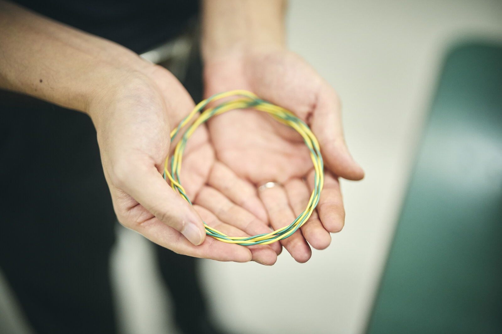 市販のツイストケーブルやツイスト専用の機械もありましたが、どれも大量に使う人向けばかりでした。私たちは必要なときに必要な量しか使わないのでオーバースペックだったんです。