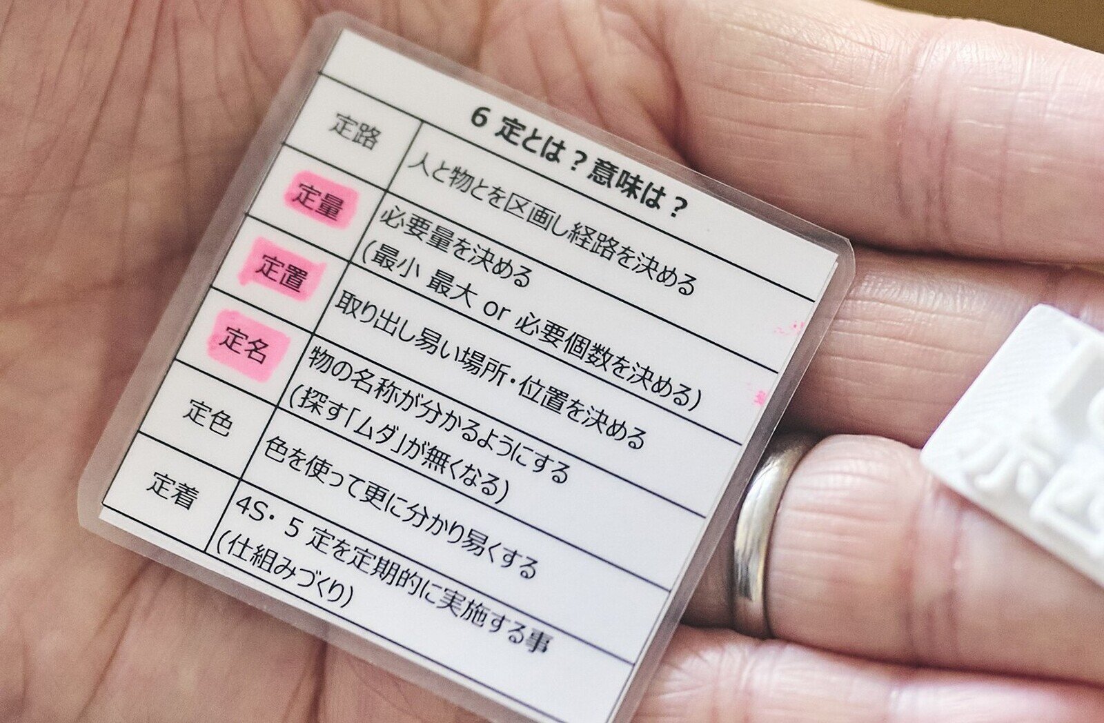 カギの利用者を見える化した件は、先生たちが自主的に考えたそうだ。まさに改善が定着しつつある証。先生たちはこのようなメモも持ち歩いている。