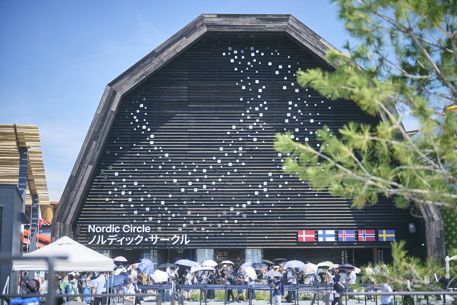 パビリオンの展示パネルには「フィンランドで、サウナの数はクルマの台数よりも多い。別荘や職場を含めると一家に平均3台も」と記載されていた。