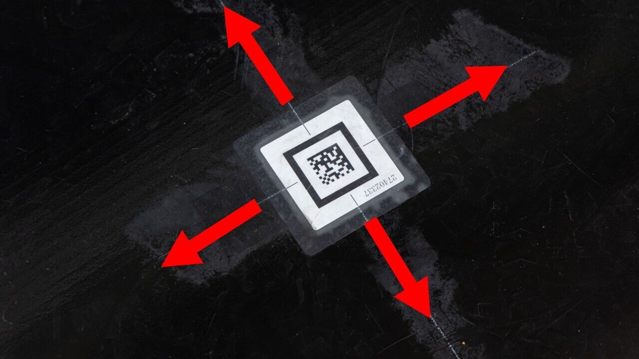 この2次元コードを工場内に貼り巡らすことにより、状況に応じて最適な経路設定ができる。