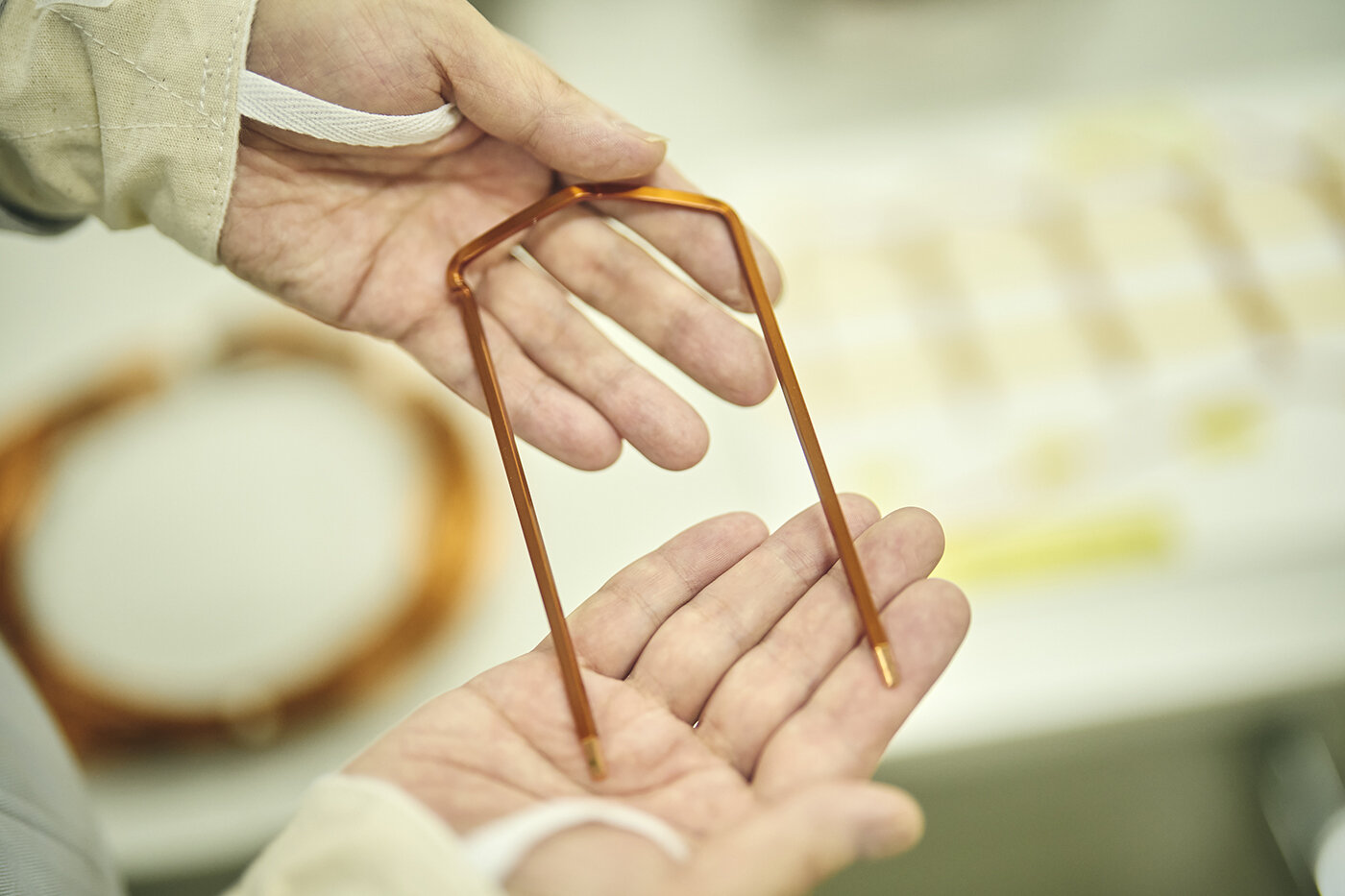 手巻きで培った知識は、ここでも活きた。どこに傷がつきやすいか。どうすれば銅線にストレスをかけずに成形できるか。永濵の経験が、平角線の工法開発を支えた。