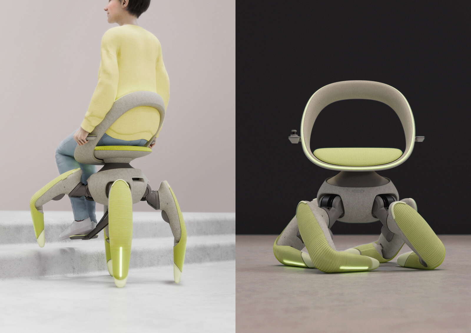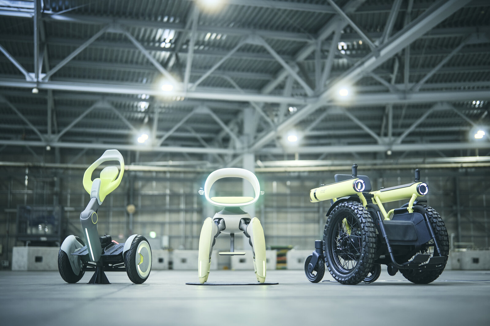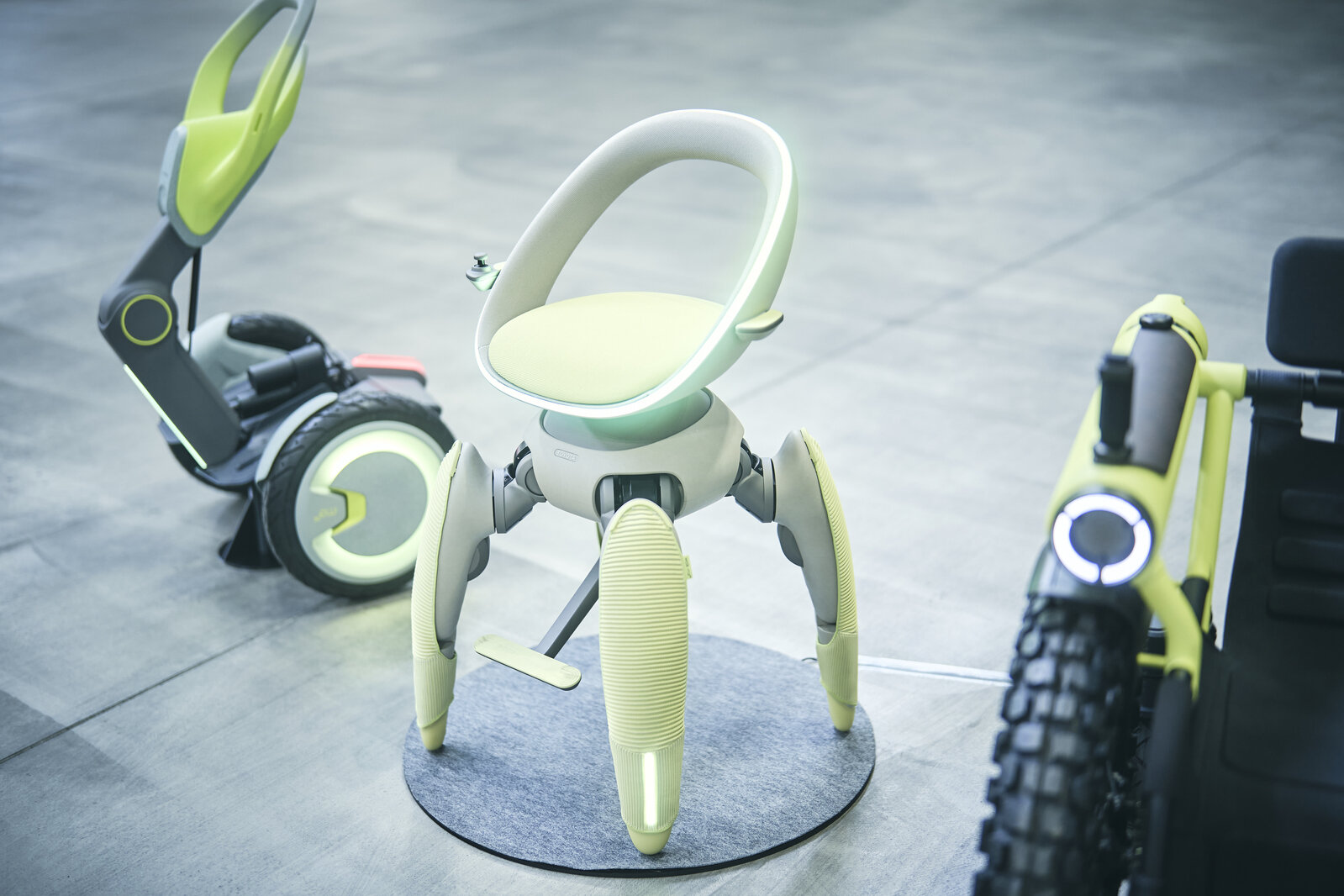 車いすと違ってタイヤではないので、段差を気にせず、屋内から屋外までをシームレスに移動できる4足歩行モビリティだ。正座から起き上がるような日本的な動きも取り入れたという。