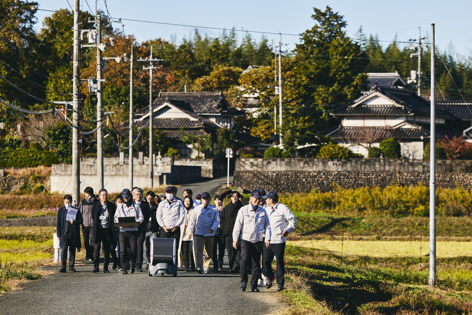 トヨタ内でもほぼ知られていないというモビリティ。取材現場に着くと、田んぼのなかに大名行列のような不気味な集団が。一体何があったのか!?