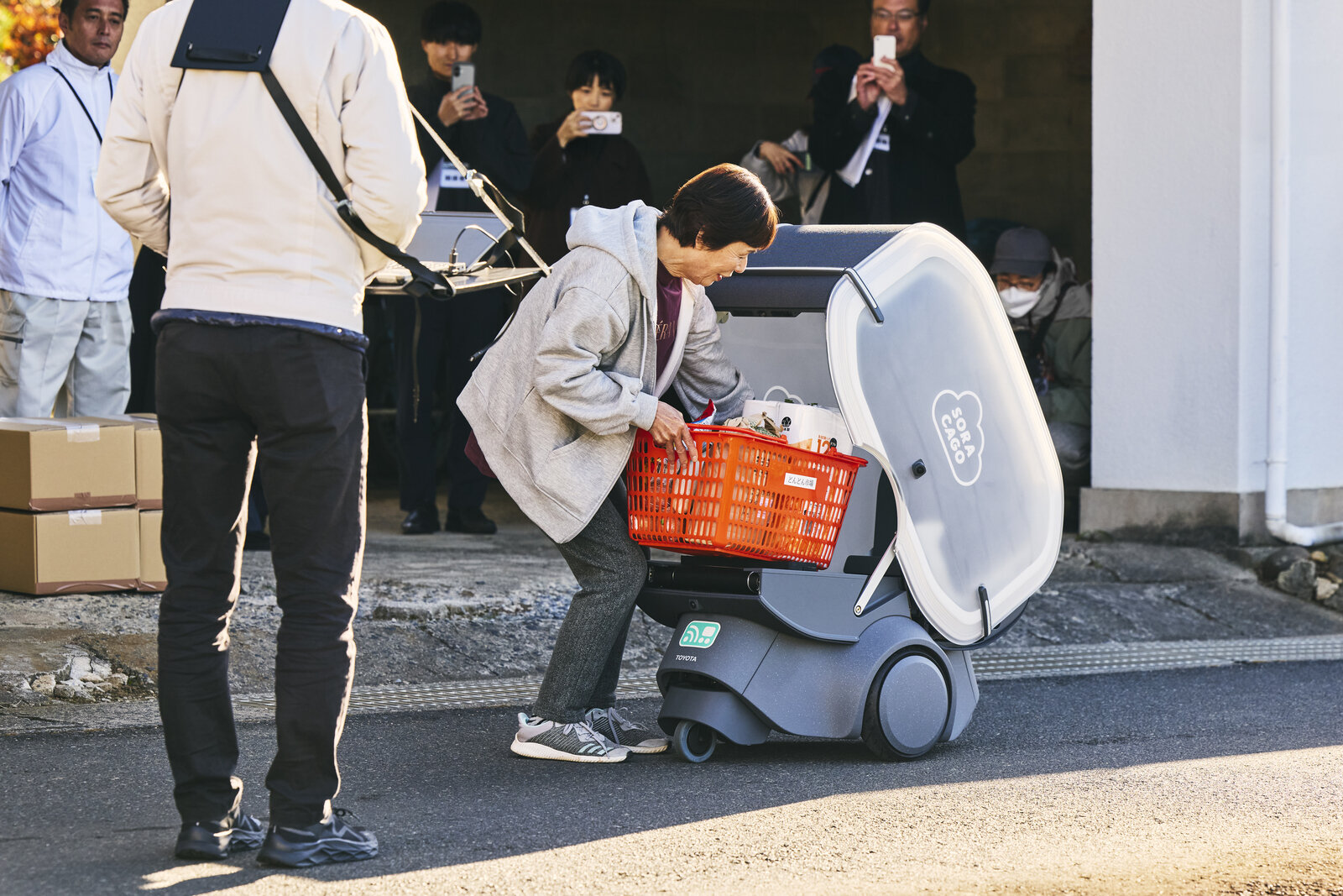免許を返納された方には、こちらが玄関先まで持っていくしかない。でもロボットで完結すると地域のコミュニケーションが減ってしまう。今後、ロボットにカメラを付けて地域の方と会話できれば嬉しいですね。