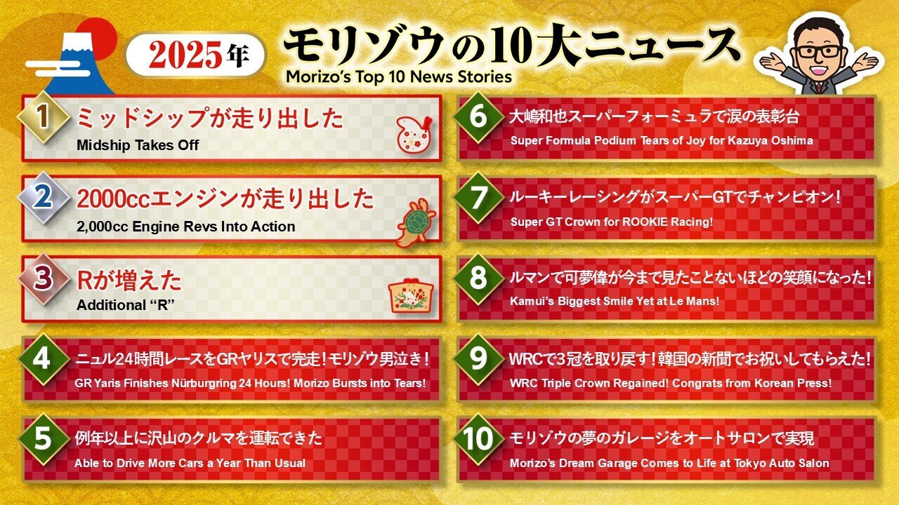 まずは2人で前回のオートサロンで披露した「モリゾウの『こうなったらいいな』10大ニュース」を答え合わせ。