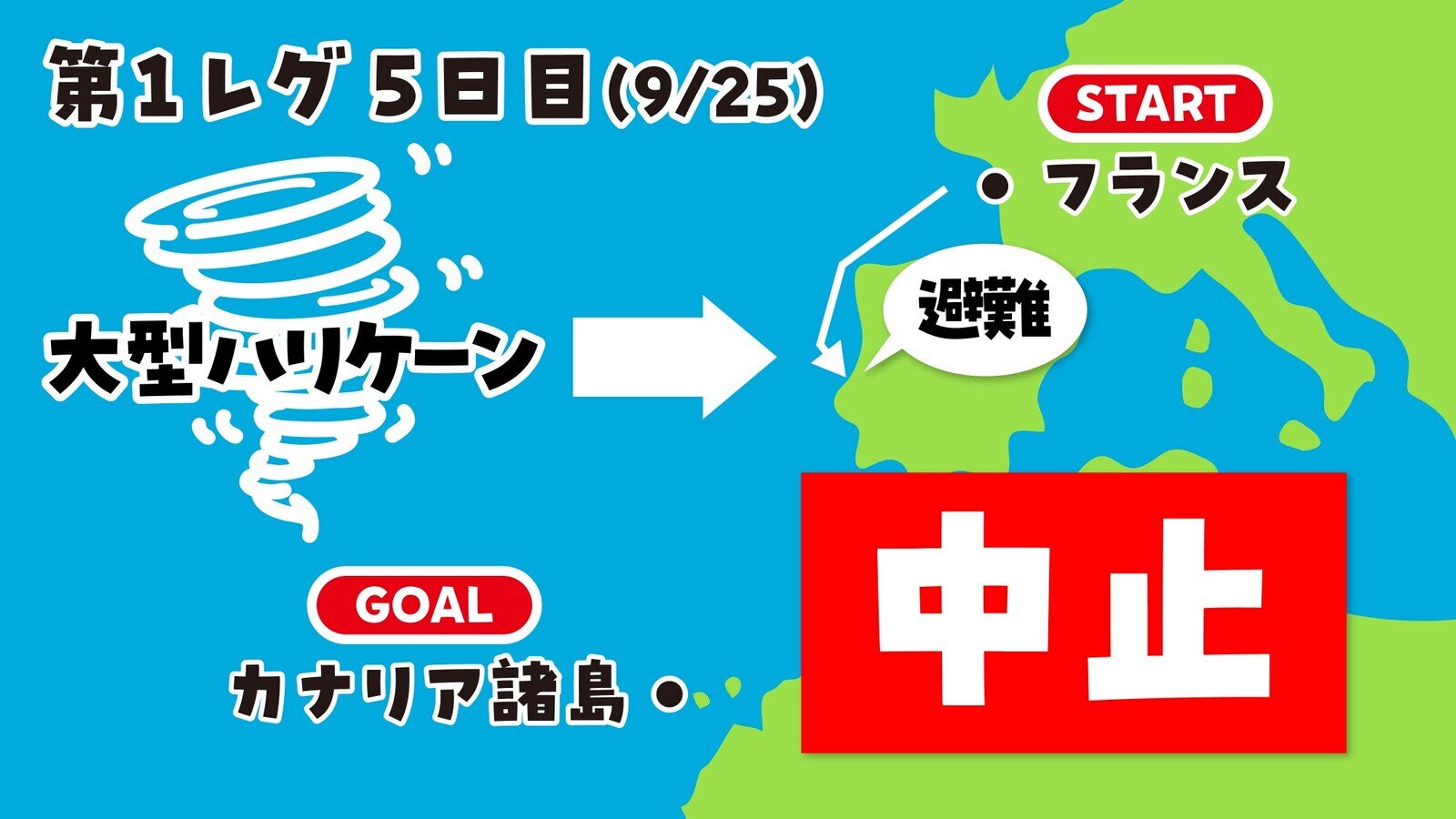 第1レグの中止が決まり、風が強い西側にいた高原選手は、急いで避難することに。ポルトガルの港町にたどり着いたが、大会のルールでスマホはなく、持っているのはパスポートとクレジットカードのみ。